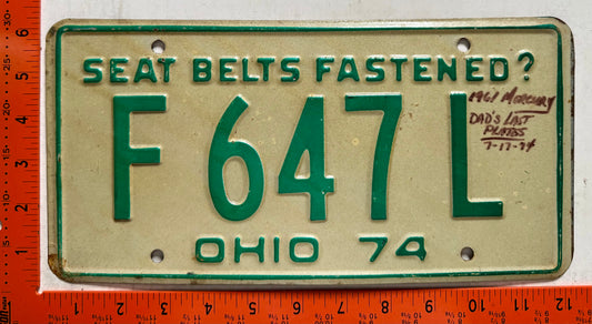 1974 Ohio Passenger #F646L and F647L License Plates