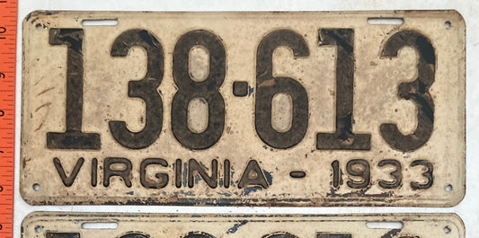 1933 Virginia #138-613 Passenger License Plate (Pair)