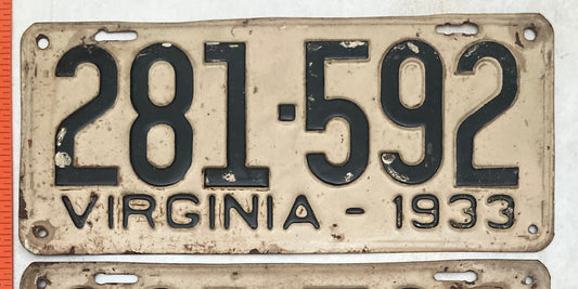 1933 Virginia #281-592 Passenger License Plate (Pair)