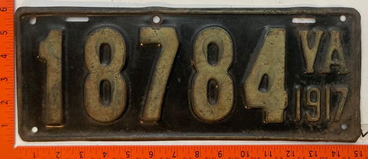 1917 Virginia #18784 Passenger License Plate