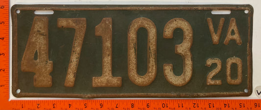 1920 Virginia #47103 Passenger License Plate