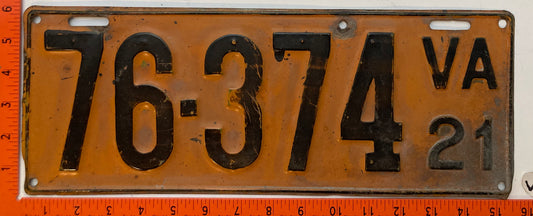 1921 Virginia #76-374 Passenger License Plate