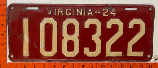 1924 Virginia #108322 Passenger License Plate