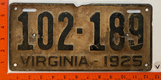 1925 Virginia #102189 Passenger License Plate