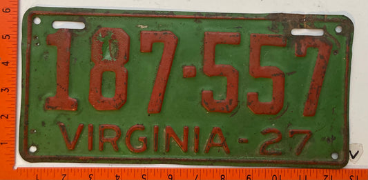 1927 Virginia #187-557 Passenger License Plate