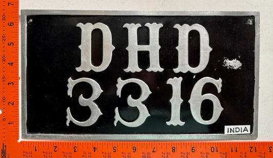 undated India #DHD/3316 Passenger License Plate