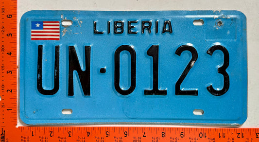 2005 base Liberia #UN-0123 United Nations License Plate