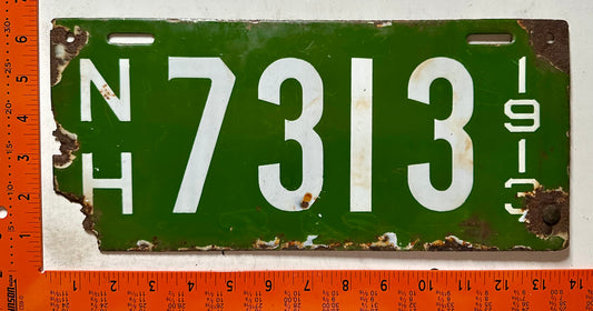 1913 New Hampshire #7313 Passenger License Plate (Porcelain)