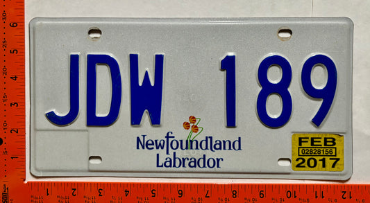 2017 Newfoundland #JDW 189 Passenger License Plate