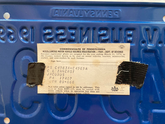 1969 Pennsylvania #C45-63A M.V. Business License Plate (with Registration)