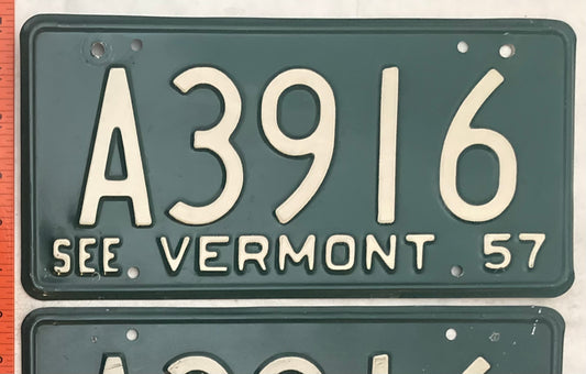 1957 Vermont #A3916 Passenger License Plate (Pair)