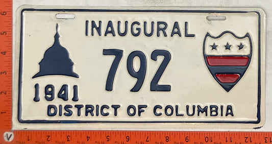 1941 Washington, DC #792 Presidential Inaugural Passenger License Plate (with Envelope)