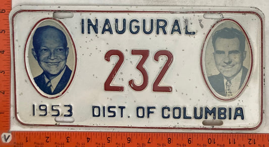 1953 Washington, DC #232 Presidential Inaugural Passenger License Plate