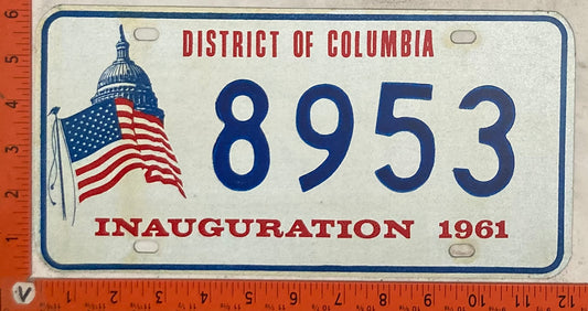 1961 Washington, DC #8953 Presidential Inaugural Passenger License Plate