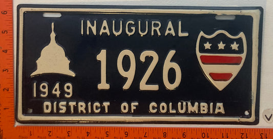 1949 Washington, DC #1926 Presidential Inaugural Passenger License Plate