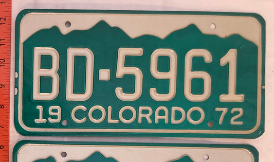 1972 Colorado #BD-5961 Passenger License Plate (Pair)