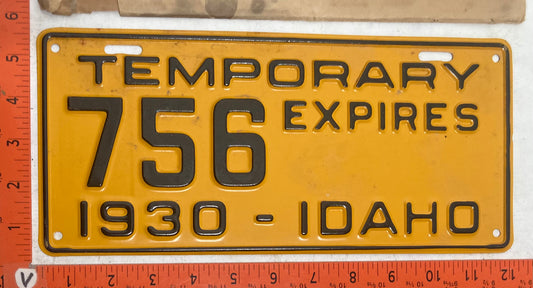 1930 Idaho #756 Temporary Tourist Passenger License Plate (w/Envelope)