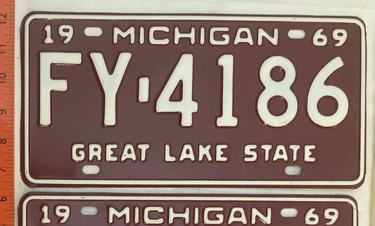 1969 Michigan #FY-4186 Passenger License Plate (Pair)
