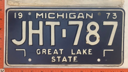 1973 Michigan #JHT-787 Passenger License Plate (with Envelope)