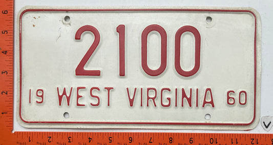 1960 West Virginia #2100 Passenger License Plate