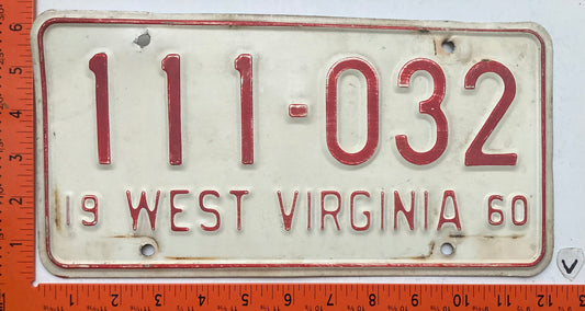 1960 West Virginia #111-032 Passenger License Plate