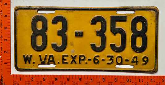 1949 West Virginia #83-358 Passenger License Plate