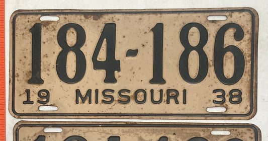 1938 Missouri #184-186 Passenger License Plate (Pair)