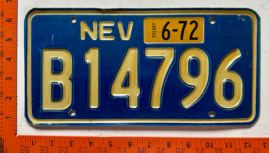 1972 Nevada #B14796 Passenger License Plate