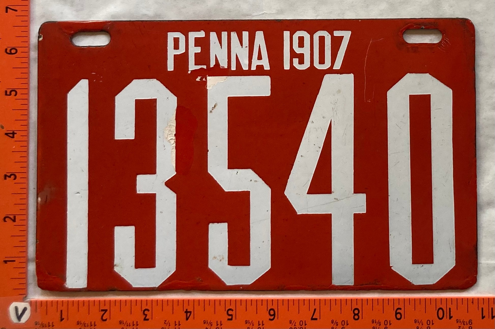 1907 Pennsylvania #13540 Passenger License Plate