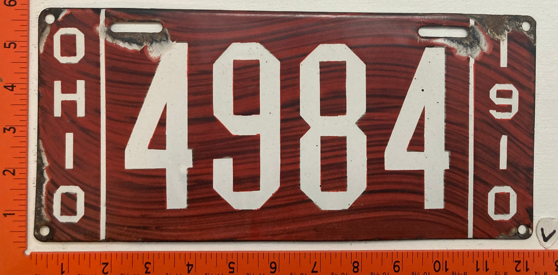1910 Ohio #4984 Passenger License Plate (Porcelain)