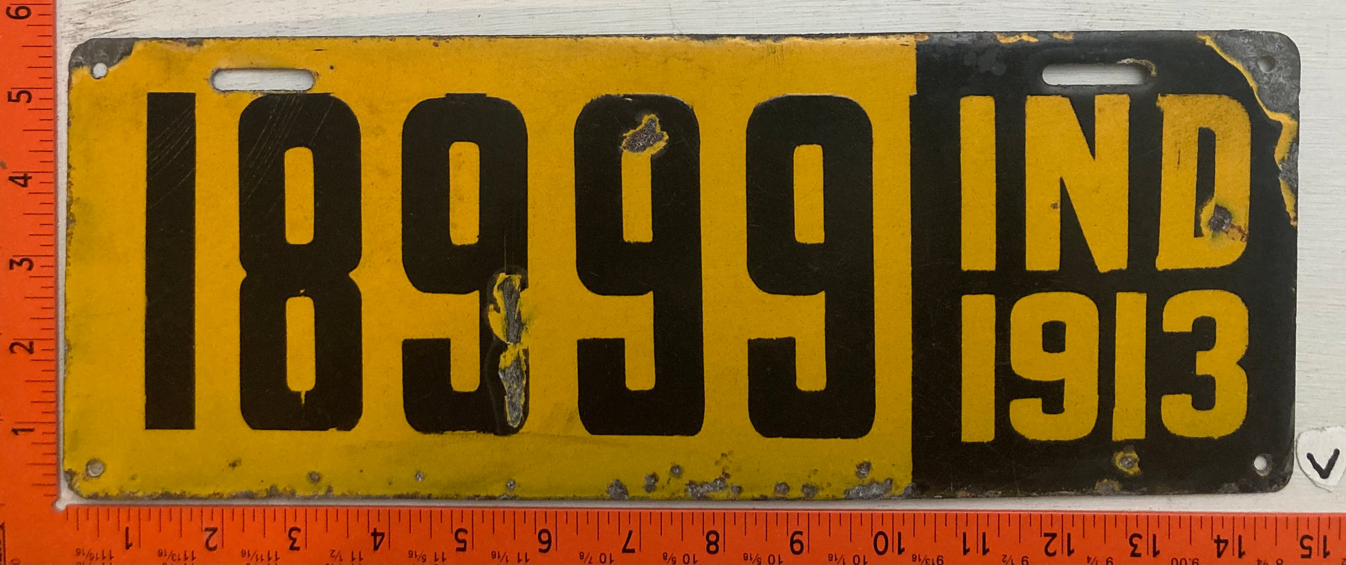 1913 Indiana #18999 Passenger License Plate (Porcelain)