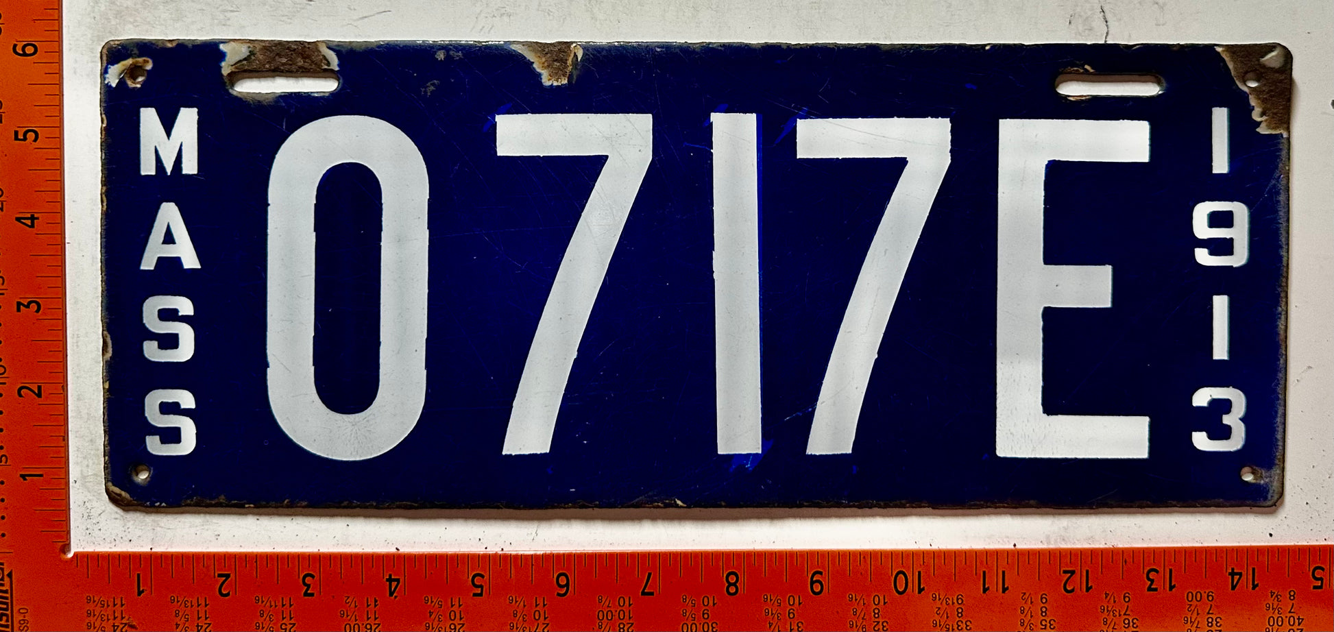 1913 Massachusetts #0717E Dealer License Plate (Porcelain)