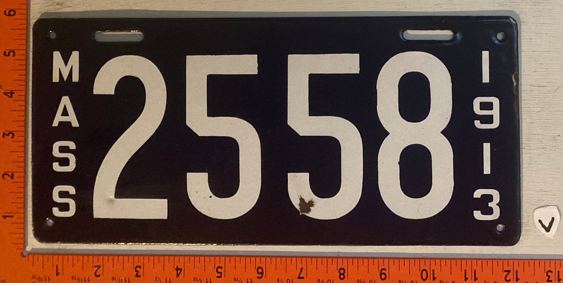 1913 Massachusetts #2558 Passenger License Plate (Porcelain)