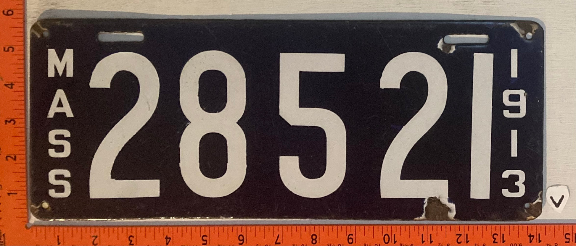 1913 Massachusetts #28521 Passenger License Plate (Porcelain)