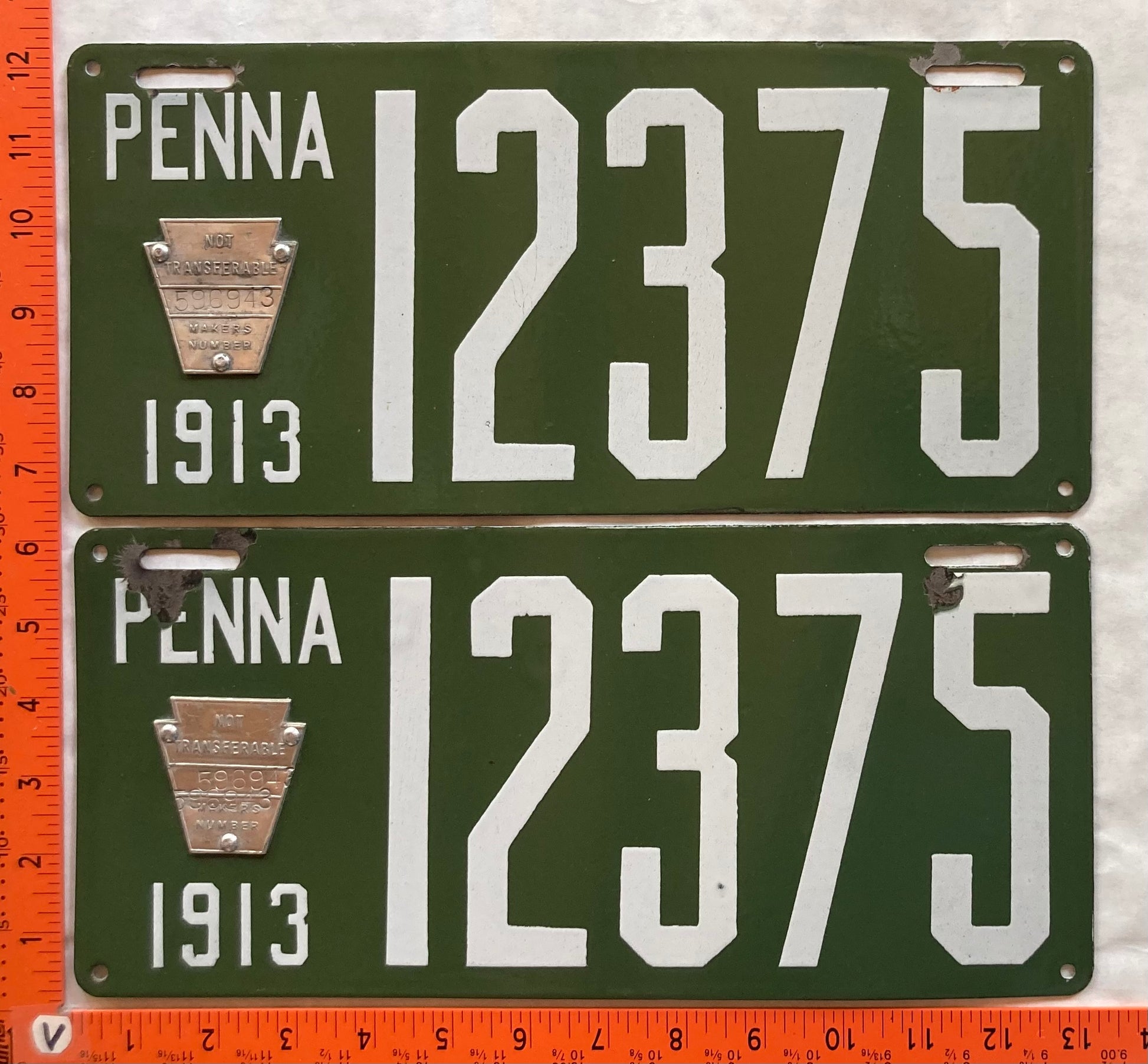 1913 Pennsylvania #12375 Passenger License Plate (Pair)