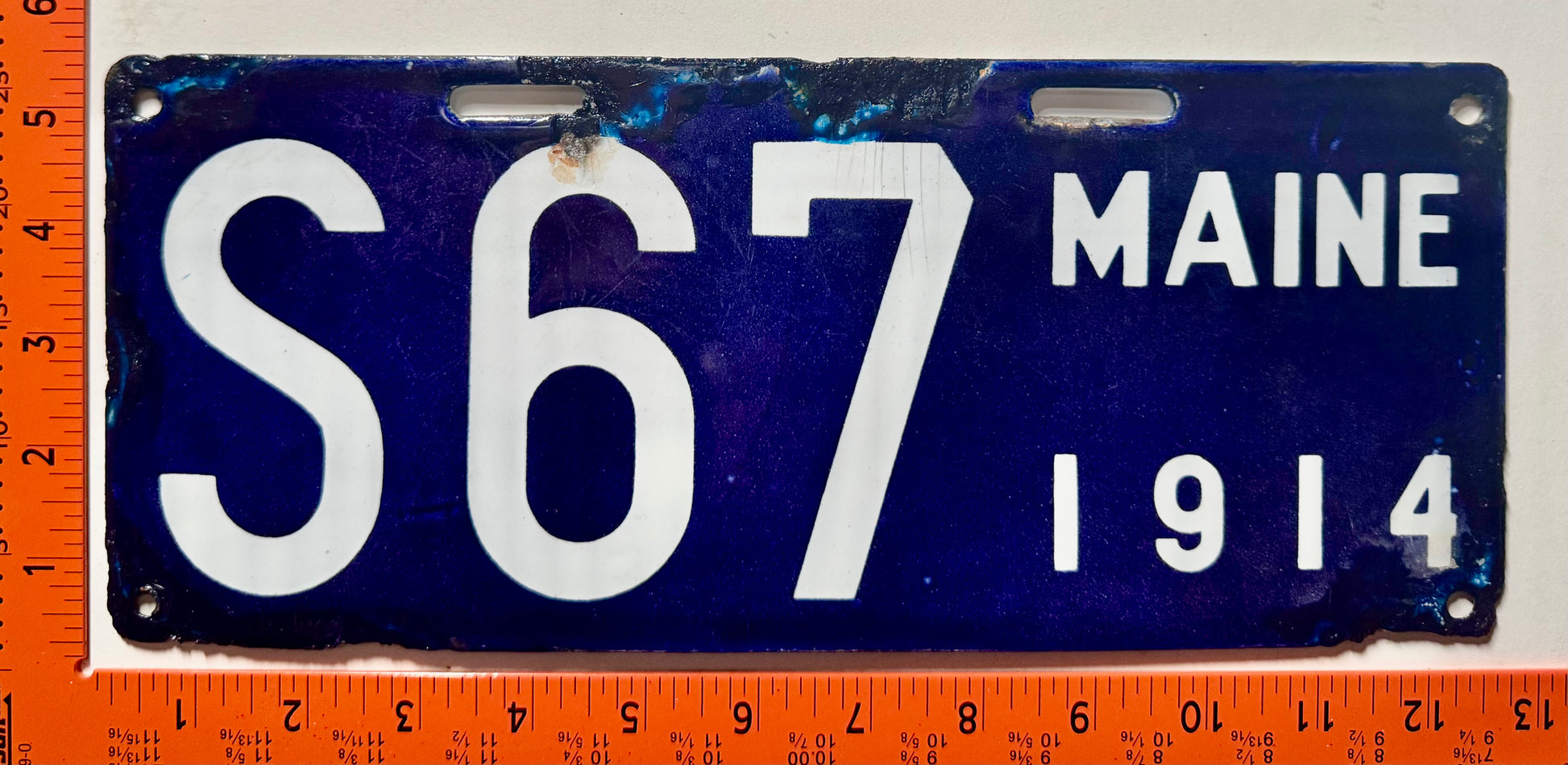 1914 Maine #S67 Special Passenger License Plate (Porcelain)