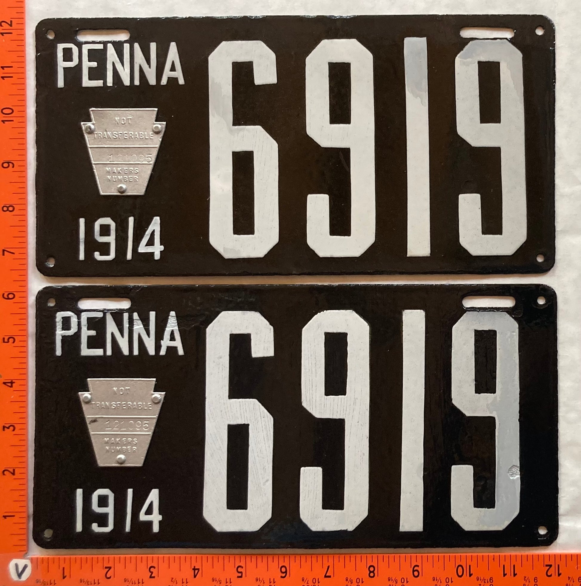1914 Pennsylvania #6919 Passenger License Plate (Pair)