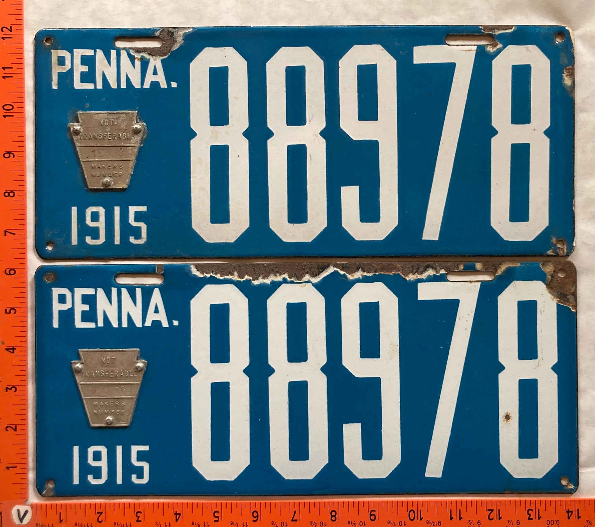 1915 Pennsylvania #88978 Passenger License Plate (Pair)