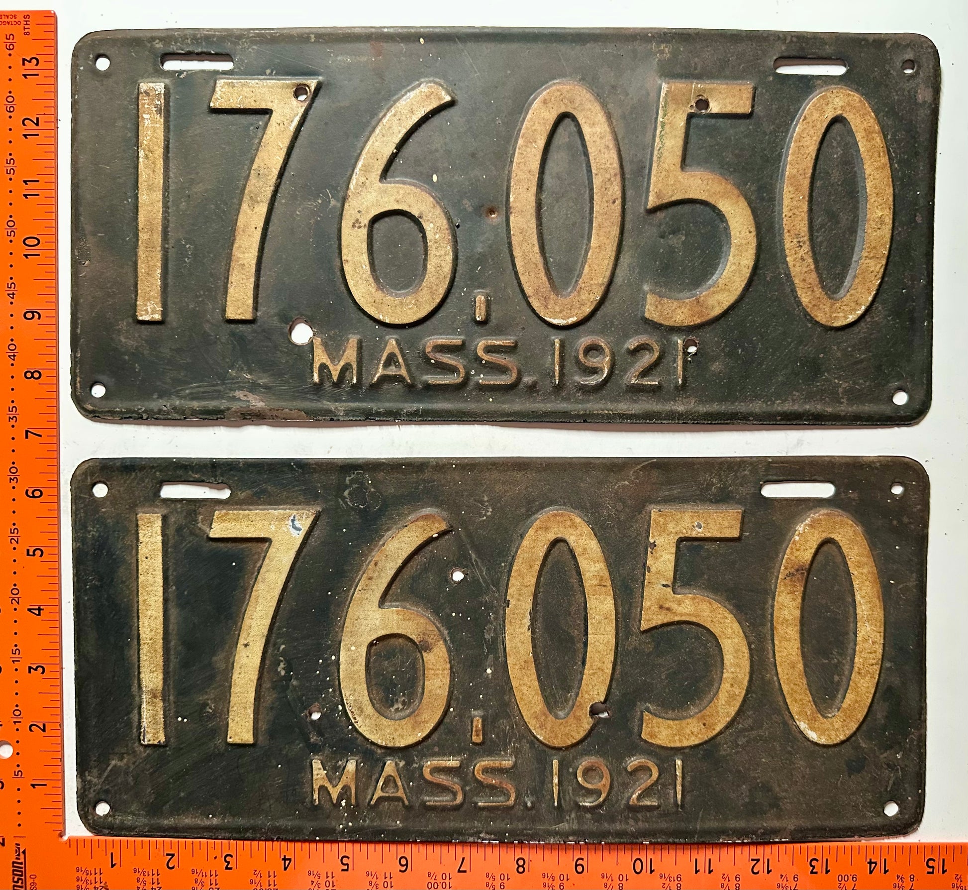 1921 Massachusetts #176.050 Passenger License Plate (Pair)