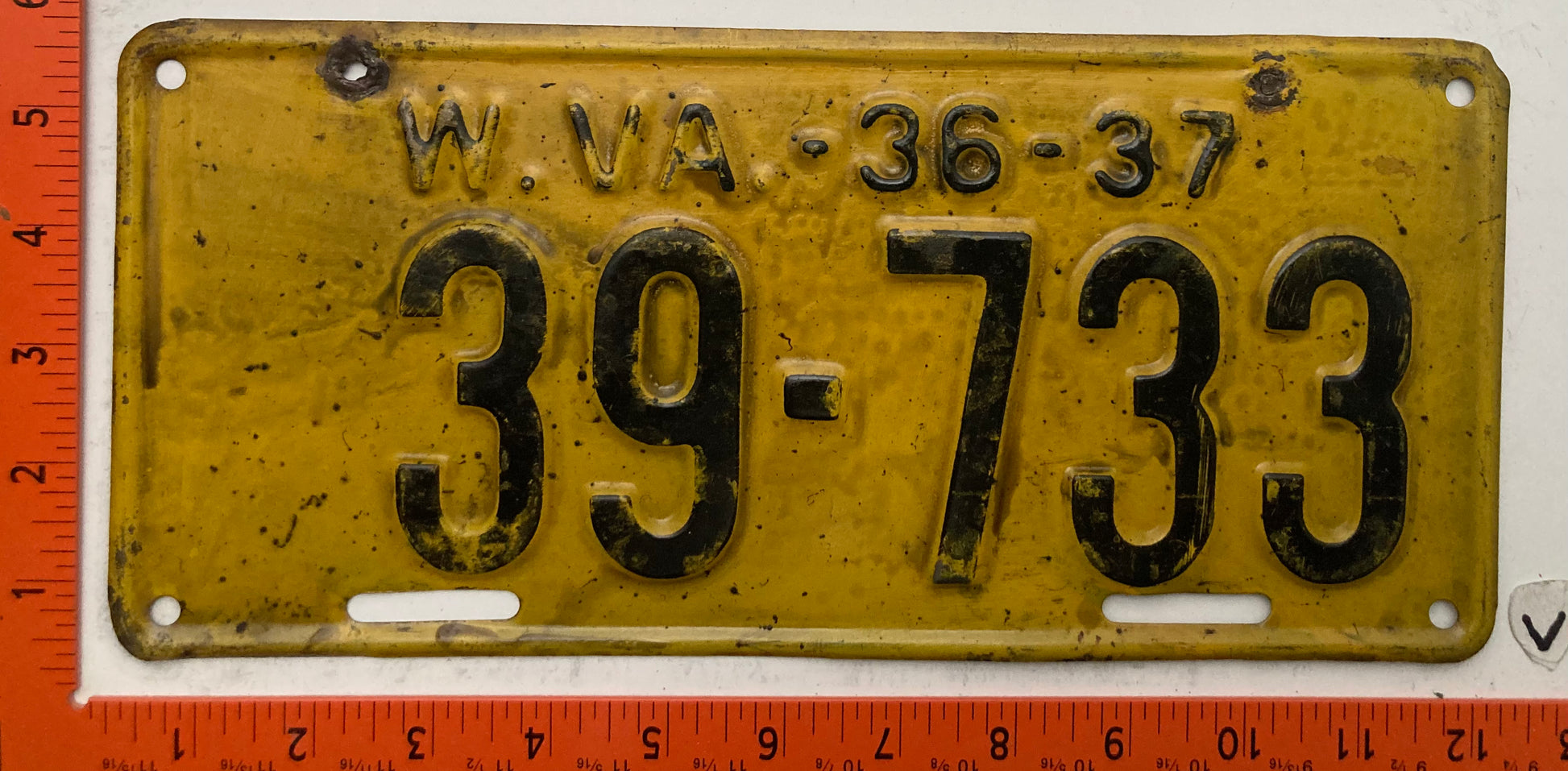 1936/1937 West Virginia #39-733 Passenger License Plate