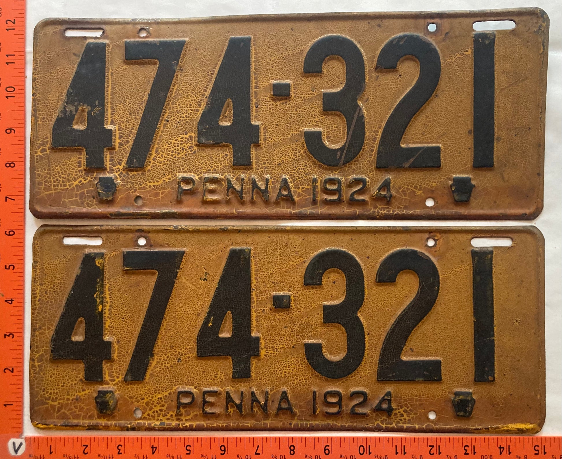 1924 Pennsylvania #474-321 Passenger License Plate (Pair)