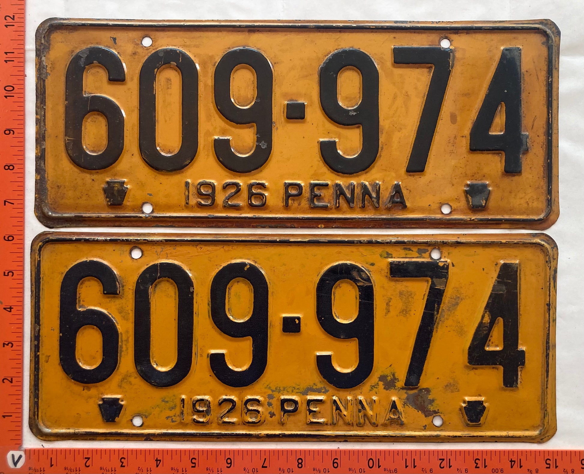1926 Pennsylvania #609-974 Passenger License Plate (Pair)
