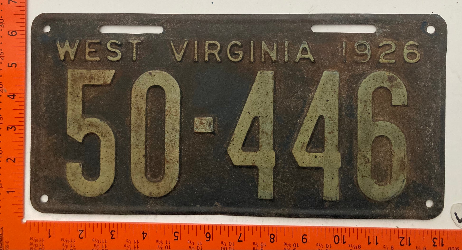 1926 West Virginia #50-446 Passenger License Plate