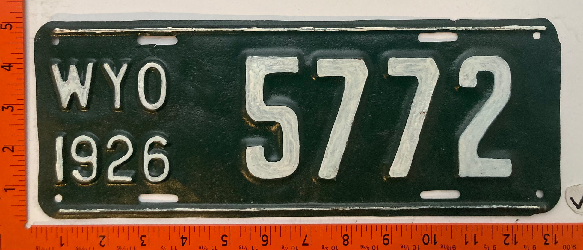 1926 Wyoming #5772 Passenger License Plate (Repaint)