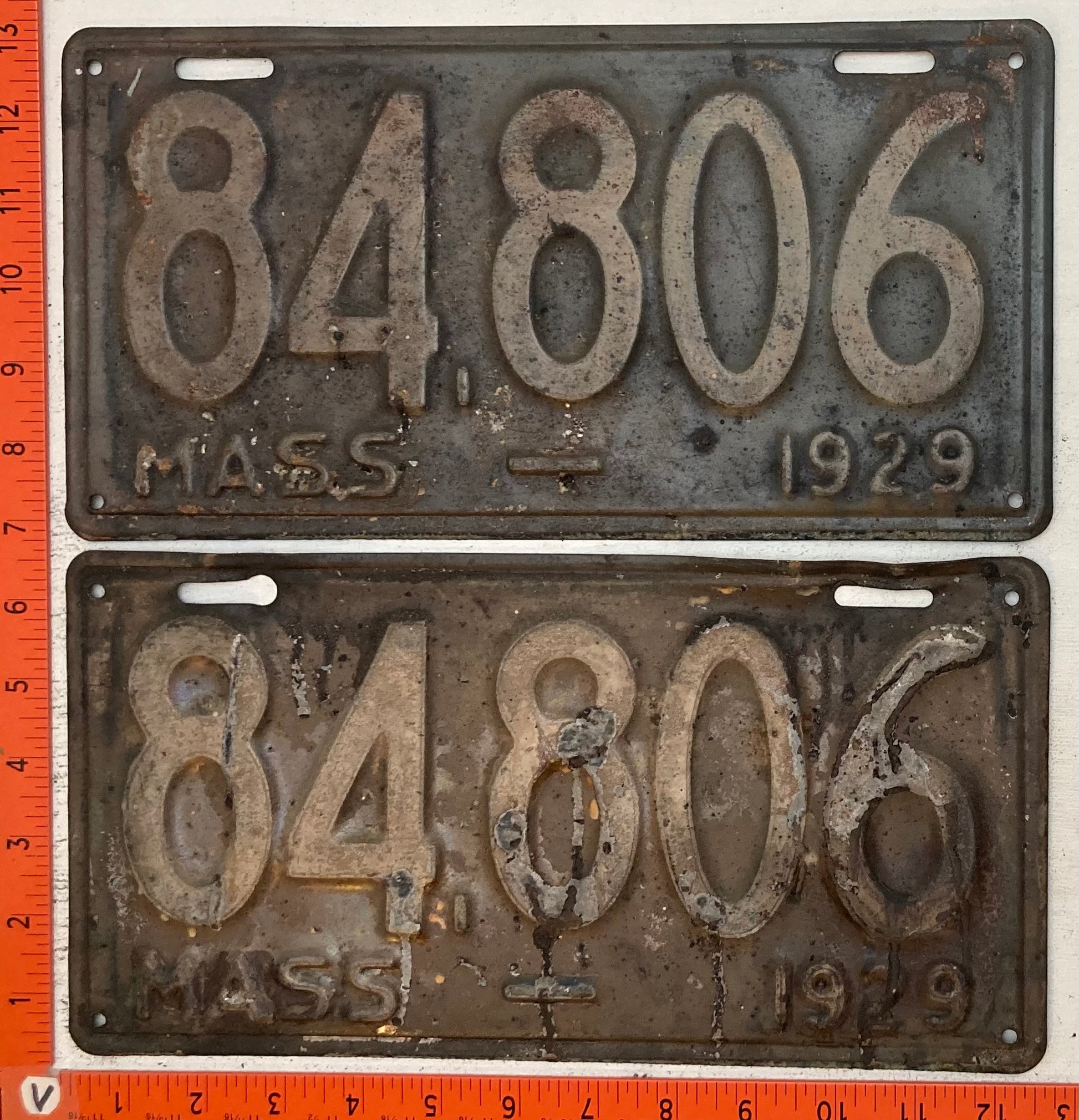 1929 Massachusetts #84806 Passenger License Plate (Pair)