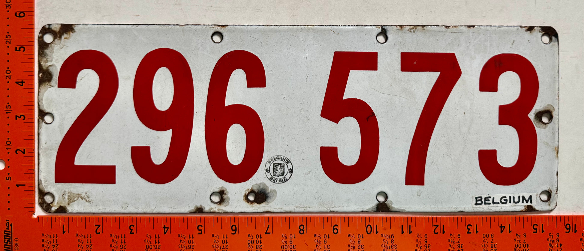 1928-1953 Belgium #296 573 Passenger License Plate (Porcelain)