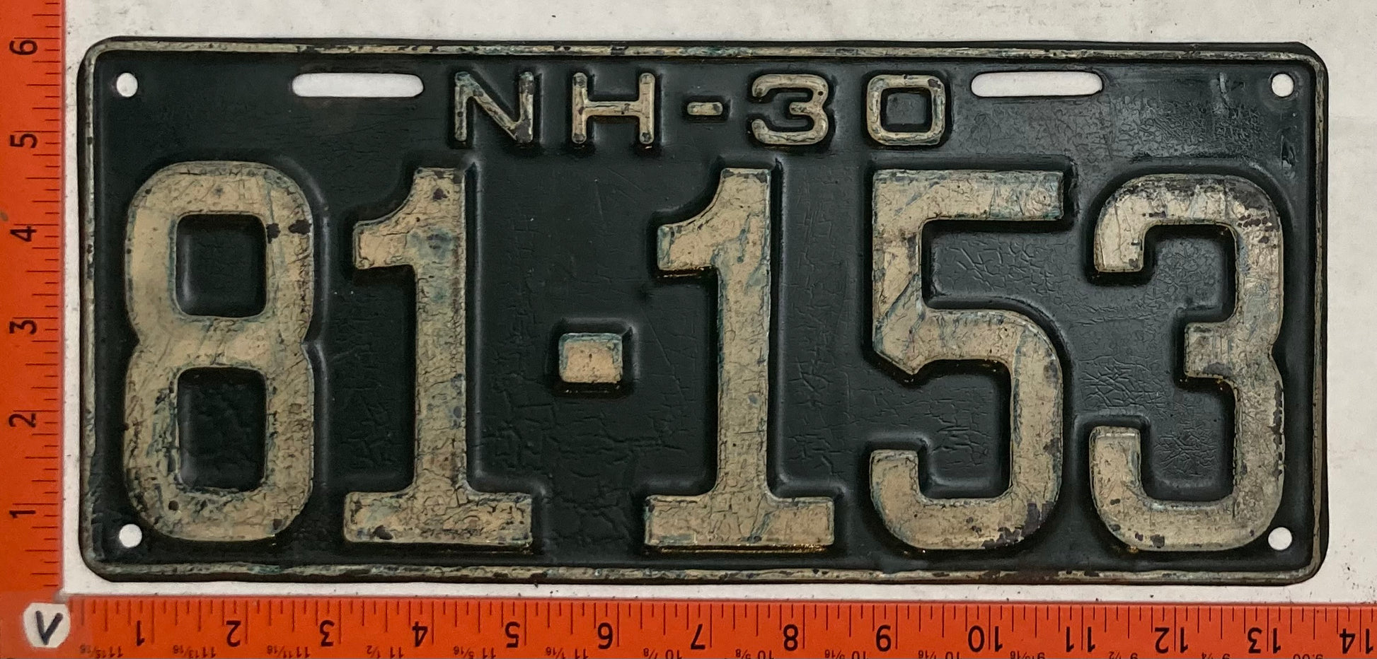 1930 New Hampshire #81-153 Passenger License Plate (Shellacked))