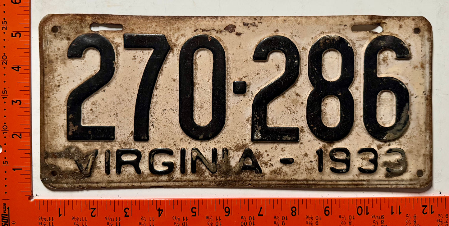 1933 Virginia #270-286 Passenger License Plate