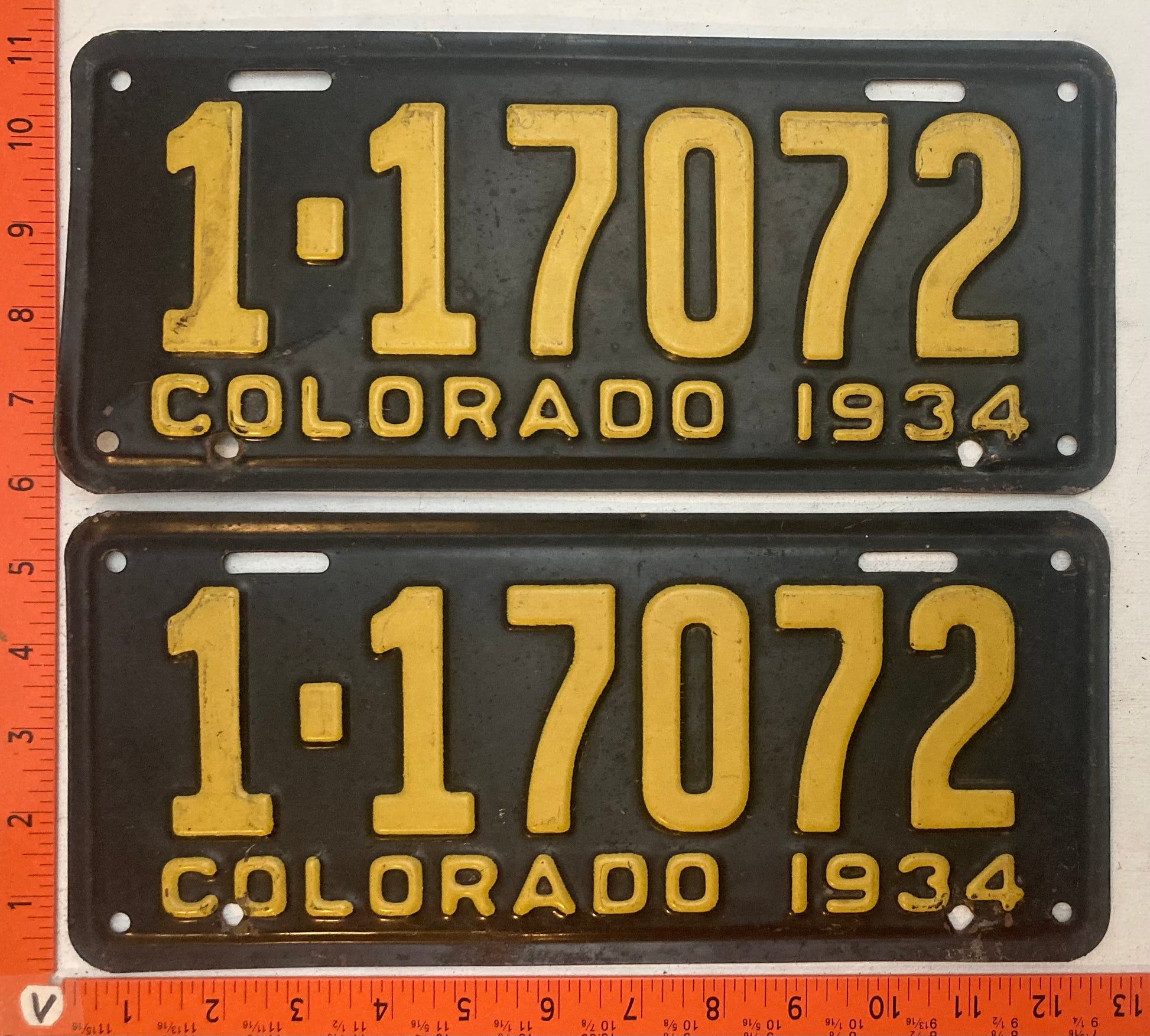 1934 Colorado #1-17072 Passenger License Plate (Pair)