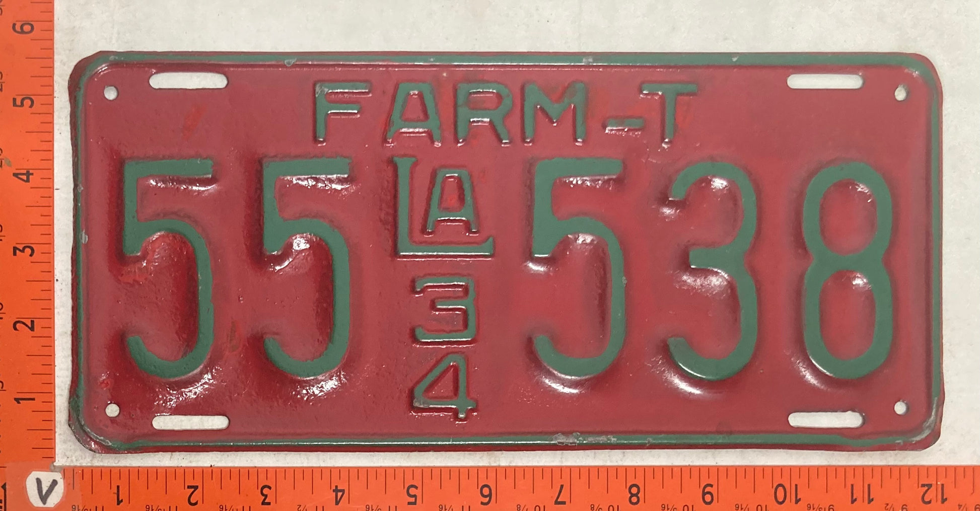 1934 Louisiana #55 538 Farm Trailer License Plate (Repaint)